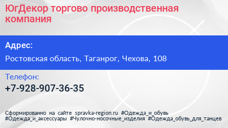 ЮгДекор, торгово-производственная компания по адресу Ростовская область, Таганрог, Чехова, 108 в дальнейшем Организация, размещена в следующих категориях: