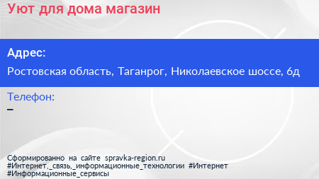 Уют для дома, магазин по адресу Ростовская область, Таганрог, Николаевское шоссе, 6д в дальнейшем Организация, размещена в следующих категориях: