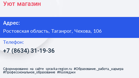 Уют, магазин по адресу Ростовская область, Таганрог, Чехова, 106 в дальнейшем Организация, размещена в следующих категориях:
