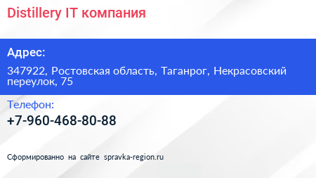 Distillery, IT-компания по адресу 347922, Ростовская область, Таганрог, Некрасовский переулок, 75 в дальнейшем Организация, размещена в следующих категориях: