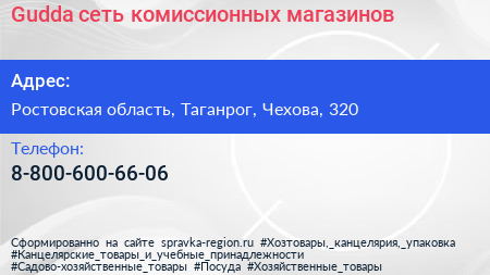 Gudda, сеть комиссионных магазинов по адресу Ростовская область, Таганрог, Чехова, 320 в дальнейшем Организация, размещена в следующих категориях: