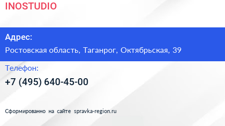 INOSTUDIO по адресу Ростовская область, Таганрог, Октябрьская, 39 в дальнейшем Организация, размещена в следующих категориях: