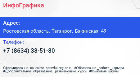 ИнфоГрафика по адресу Ростовская область, Таганрог, Бакинская, 49 в дальнейшем Организация, размещена в следующих категориях: