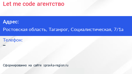 Let me code, агентство по адресу Ростовская область, Таганрог, Социалистическая, 7/1а в дальнейшем Организация, размещена в следующих категориях: