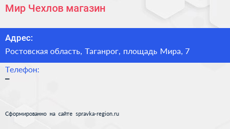Мир Чехлов, магазин по адресу Ростовская область, Таганрог, площадь Мира, 7 в дальнейшем Организация, размещена в следующих категориях: