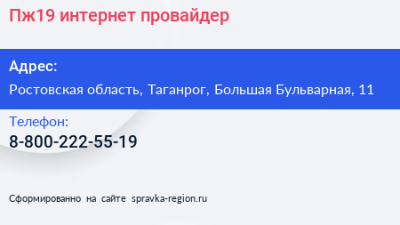 Пж19, интернет-провайдер по адресу Ростовская область, Таганрог, Большая Бульварная, 11 в дальнейшем Организация, размещена в следующих категориях: