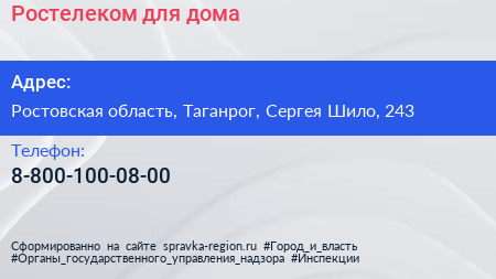 Ростелеком для дома по адресу Ростовская область, Таганрог, Сергея Шило, 243 в дальнейшем Организация, размещена в следующих категориях: