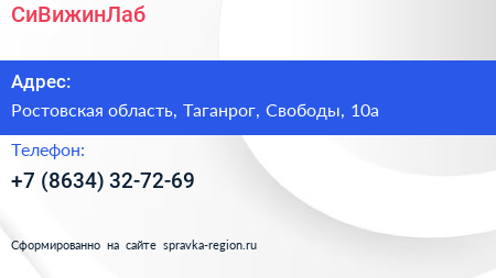СиВижинЛаб по адресу Ростовская область, Таганрог, Свободы, 10а в дальнейшем Организация, размещена в следующих категориях: