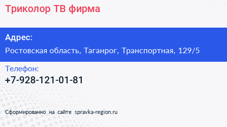 Триколор ТВ, фирма по адресу Ростовская область, Таганрог, Транспортная, 129/5 в дальнейшем Организация, размещена в следующих категориях: