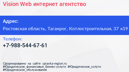Vision-Web, интернет-агентство по адресу Ростовская область, Таганрог, Котлостроительная, 37 к19 в дальнейшем Организация, размещена в следующих категориях:
