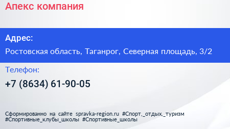 Апекс, компания по адресу Ростовская область, Таганрог, Северная площадь, 3/2 в дальнейшем Организация, размещена в следующих категориях: