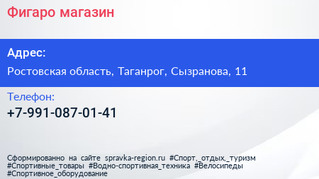Фигаро, магазин по адресу Ростовская область, Таганрог, Сызранова, 11 в дальнейшем Организация, размещена в следующих категориях: