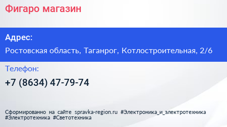 Фигаро, магазин по адресу Ростовская область, Таганрог, Котлостроительная, 2/6 в дальнейшем Организация, размещена в следующих категориях: