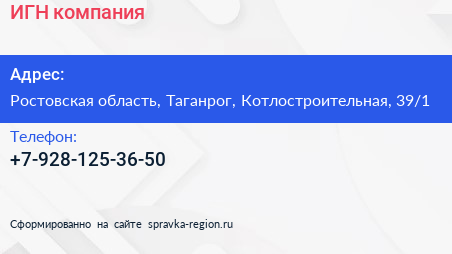 ИГН, компания по адресу Ростовская область, Таганрог, Котлостроительная, 39/1 в дальнейшем Организация, размещена в следующих категориях: