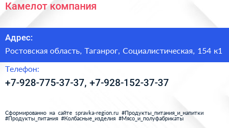 Камелот, компания по адресу Ростовская область, Таганрог, Социалистическая, 154 к1 в дальнейшем Организация, размещена в следующих категориях: