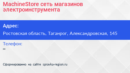MachineStore, сеть магазинов электроинструмента по адресу Ростовская область, Таганрог, Александровская, 145 в дальнейшем Организация, размещена в следующих категориях: