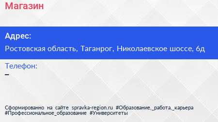 Магазин по адресу Ростовская область, Таганрог, Николаевское шоссе, 6д в дальнейшем Организация, размещена в следующих категориях: