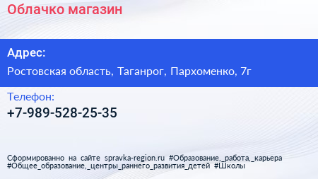 Облачко, магазин по адресу Ростовская область, Таганрог, Пархоменко, 7г в дальнейшем Организация, размещена в следующих категориях: