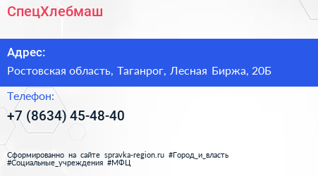 СпецХлебмаш по адресу Ростовская область, Таганрог, Лесная Биржа, 20Б в дальнейшем Организация, размещена в следующих категориях:
