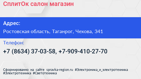 СплитОк, салон-магазин по адресу Ростовская область, Таганрог, Чехова, 341 в дальнейшем Организация, размещена в следующих категориях: