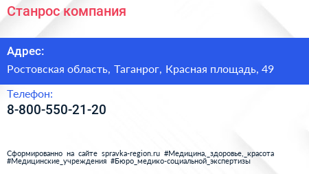 Станрос, компания по адресу Ростовская область, Таганрог, Красная площадь, 49 в дальнейшем Организация, размещена в следующих категориях:
