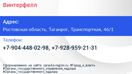Винтерфелл по адресу Ростовская область, Таганрог, Транспортная, 46/1 в дальнейшем Организация, размещена в следующих категориях: