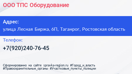 ООО «ТПС-Оборудование» по адресу улица Лесная Биржа, 6П, Таганрог, Ростовская область в дальнейшем Организация, размещена в следующих категориях: