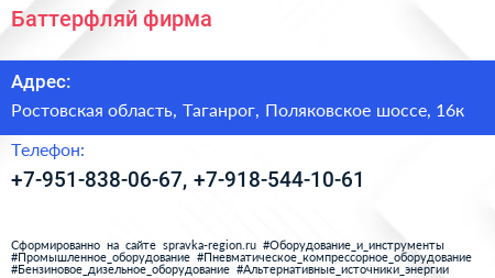 Баттерфляй, фирма по адресу Ростовская область, Таганрог, Поляковское шоссе, 16к в дальнейшем Организация, размещена в следующих категориях: