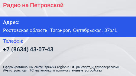 Радио на Петровской по адресу Ростовская область, Таганрог, Октябрьская, 37а/1 в дальнейшем Организация, размещена в следующих категориях: