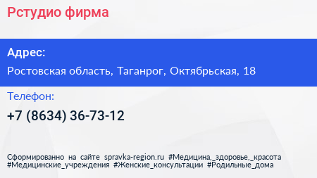 Рстудио, фирма по адресу Ростовская область, Таганрог, Октябрьская, 18 в дальнейшем Организация, размещена в следующих категориях: