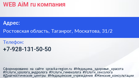 WEB-AiM.ru, компания по адресу Ростовская область, Таганрог, Москатова, 31/2 в дальнейшем Организация, размещена в следующих категориях: