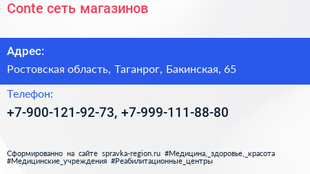 Conte, сеть магазинов по адресу Ростовская область, Таганрог, Бакинская, 65 в дальнейшем Организация, размещена в следующих категориях: