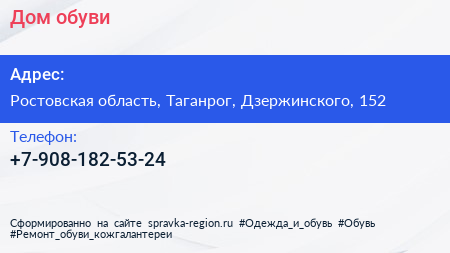 Дом обуви по адресу Ростовская область, Таганрог, Дзержинского, 152 в дальнейшем Организация, размещена в следующих категориях: