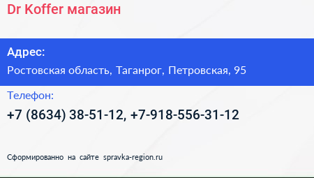 Dr. Koffer, магазин по адресу Ростовская область, Таганрог, Петровская, 95 в дальнейшем Организация, размещена в следующих категориях: