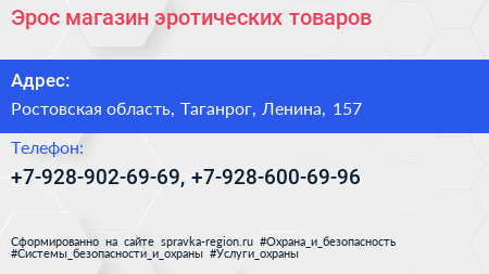 Эрос, магазин эротических товаров по адресу Ростовская область, Таганрог, Ленина, 157 в дальнейшем Организация, размещена в следующих категориях: