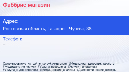 Фаббрис, магазин по адресу Ростовская область, Таганрог, Чучева, 38 в дальнейшем Организация, размещена в следующих категориях: