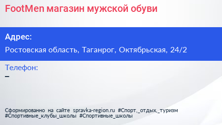 FootMen, магазин мужской обуви по адресу Ростовская область, Таганрог, Октябрьская, 24/2 в дальнейшем Организация, размещена в следующих категориях:
