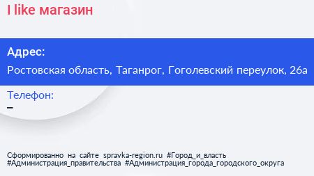 I like, магазин по адресу Ростовская область, Таганрог, Гоголевский переулок, 26а в дальнейшем Организация, размещена в следующих категориях: