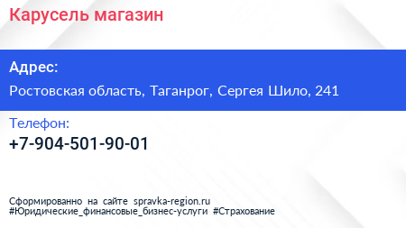 Карусель, магазин по адресу Ростовская область, Таганрог, Сергея Шило, 241 в дальнейшем Организация, размещена в следующих категориях: