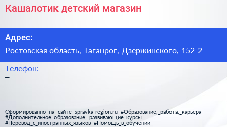 Кашалотик, детский магазин по адресу Ростовская область, Таганрог, Дзержинского, 152-2 в дальнейшем Организация, размещена в следующих категориях: