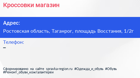 Кроссовки, магазин по адресу Ростовская область, Таганрог, площадь Восстания, 1/2г в дальнейшем Организация, размещена в следующих категориях: