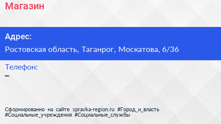 Магазин по адресу Ростовская область, Таганрог, Москатова, 6/36 в дальнейшем Организация, размещена в следующих категориях: