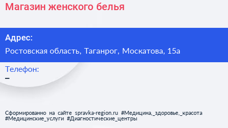 Магазин женского белья по адресу Ростовская область, Таганрог, Москатова, 15а в дальнейшем Организация, размещена в следующих категориях: