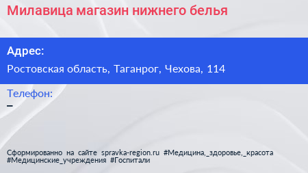 Милавица, магазин нижнего белья по адресу Ростовская область, Таганрог, Чехова, 114 в дальнейшем Организация, размещена в следующих категориях: