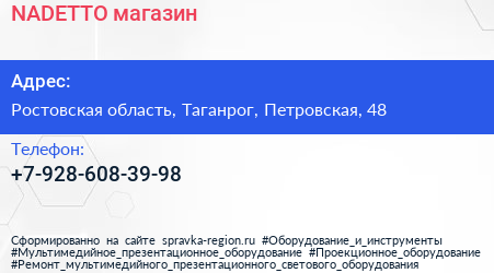NADETTO, магазин по адресу Ростовская область, Таганрог, Петровская, 48 в дальнейшем Организация, размещена в следующих категориях: