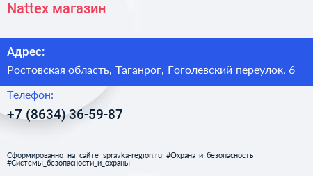 Nattex, магазин по адресу Ростовская область, Таганрог, Гоголевский переулок, 6 в дальнейшем Организация, размещена в следующих категориях: