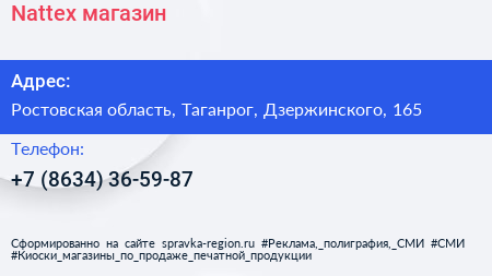 Nattex, магазин по адресу Ростовская область, Таганрог, Дзержинского, 165 в дальнейшем Организация, размещена в следующих категориях: