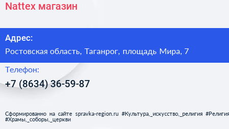 Nattex, магазин по адресу Ростовская область, Таганрог, площадь Мира, 7 в дальнейшем Организация, размещена в следующих категориях: