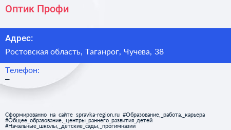 Оптик Профи по адресу Ростовская область, Таганрог, Чучева, 38 в дальнейшем Организация, размещена в следующих категориях: