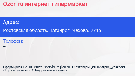 Ozon.ru, интернет-гипермаркет по адресу Ростовская область, Таганрог, Чехова, 271а в дальнейшем Организация, размещена в следующих категориях:
